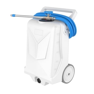 Urządzenie korzysta z wcześniej przygotowanego roztworu środka chemicznego oraz wody i wyrzuca pianę przez wąż wylotowy i nierdzewną dyszę