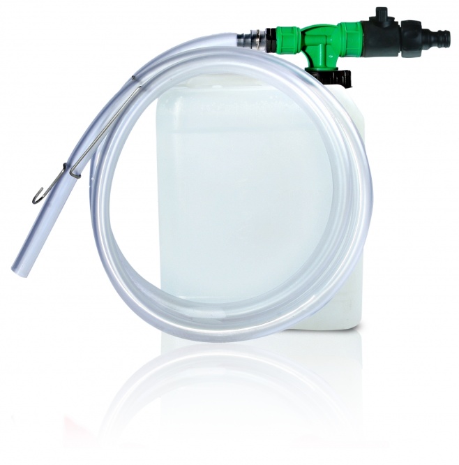 System dozowania z 2m wężem spustowym, montowany na nakrętki kanistrów. Polecany do kanistrów o pojemności od 5l do 30l. Idealny do napełniania wózków serwisowych oraz małych maszyn szorująco-zbierających. Dzięki małym rozmiarom dozownik MS-01 jest podręcznym narzędziem, łatwym do montażu oraz przenoszenia.